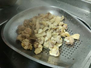 烧开一锅水,把腌制好的鸡块倒进去,再次煮开,捞出后沥干水分