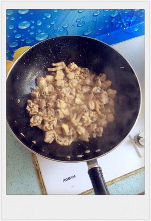 加稍多的油 把鸡胸肉炒两分钟左右盛出