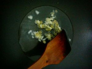 重起锅,锅里放少许油,把蒜头跟姜爆香。