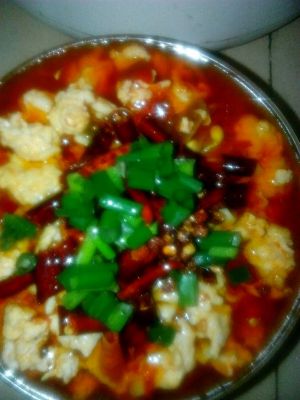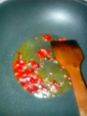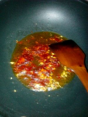 重起锅,锅里加油,(这次油可以稍微多些)待油热后放少许花椒,跟干辣椒,爆香。
