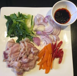 蒜切粒,姜切粒,大葱改刀成片
