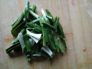 (个人觉得蒜苗好吃点) 蒜苗斜刀切段。