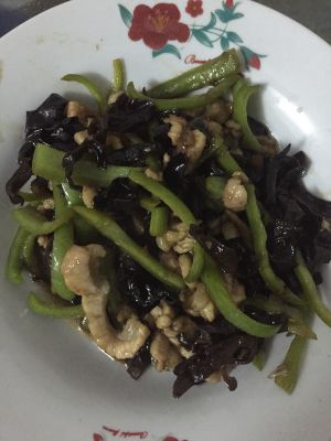 先把肉丝炒熟,加入辣椒和黑木耳丝炒(黑木耳炒的时候会爆加入一点点水就不会了)根据个人口味加入糖和醋(我加了两勺糖三勺醋)(注意:醋最好比糖多一勺)