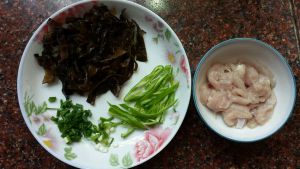 将木耳和干香菇用温水泡开,切丝备用,将葱、姜、蒜切出备用。