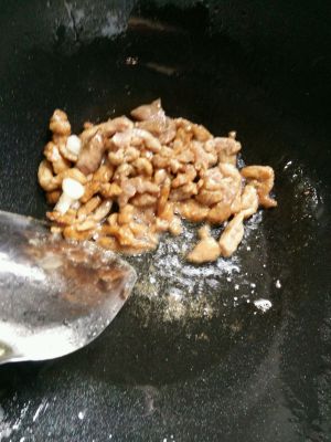 锅中放入油,倒入肉丝,翻炒至变色,盛出。