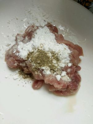 肉切丝加少许盐,生抽,生粉,胡椒粉抓匀腌十分钟