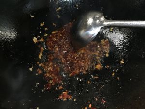 锅内底油。姜蒜末 豆瓣酱 辣妹子 泡辣椒小火炒香
