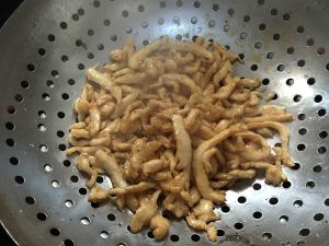 鸡胸肉切丝加入生抽料酒姜片一小点盐腌制二十分钟