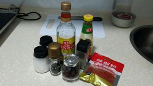 这些是腌渍肉的调料,其实你喜欢吃什么就加什么,没什么标准。