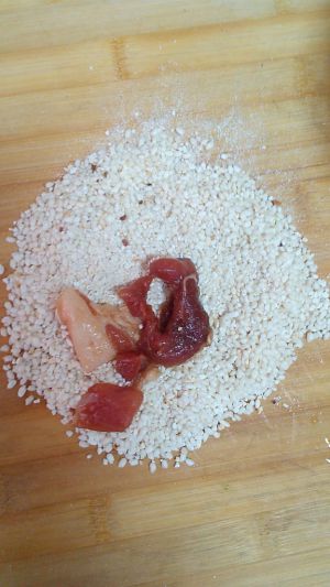 把腌好的肉水倒掉,姜片取出,放米粉搅拌均匀