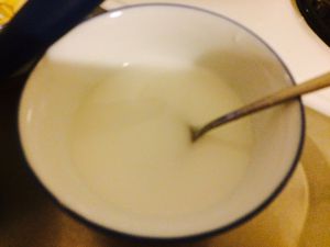 一汤匙淀粉,加入5汤匙水,搅拌均匀备用。