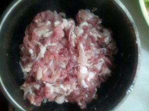 肉加淀粉加少许料酒加少许生抽抓至发粘备用