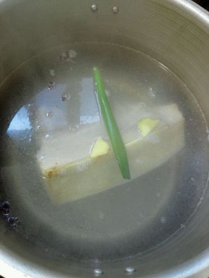 洗净的肉放入冷水锅内,切几片姜,放十来颗花椒,黄酒一汤匙,大火煮开,转中小火煮十到十五分钟关火后再闷三五分钟捞起放凉!