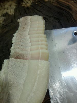 肉切1.5毫米左右薄片(考刀功哈,尽可能切薄点)肥瘦分开放