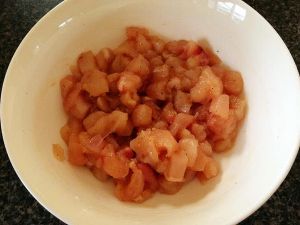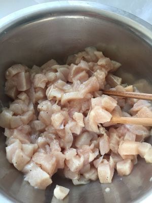 鸡肉切丁放入一小勺盐