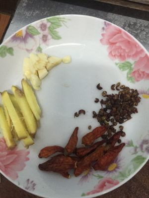 姜,蒜,辣椒,花椒备用