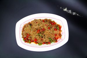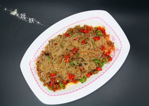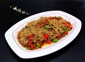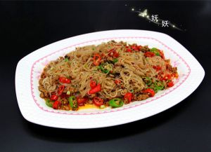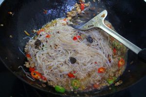 倒粉丝进去炒匀就行,因为粉丝本身是熟的了,待裹满酱汁就可出锅