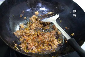 加入肉沫煸炒,肉沫如果粘在一起可用锅铲轻轻拨开