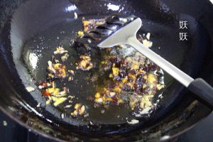 油锅烧至五成热,放姜蒜和花椒进去爆香