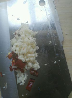 泡粉丝的同时,洋葱切丁,蘑菇切丁(一炒就变很小啦),大蒜剁蒜泥