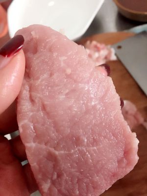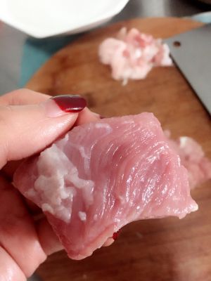 如果切这边,纹理就是反了(这道菜肉会用到生粉,切反了可能对口感影响不会很严重、但如果是小炒肉之类的菜,口感就会大打折扣、而且不易咀嚼)