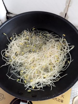2、水烧开后放入豆芽,大火煮2分钟,沥干备用。