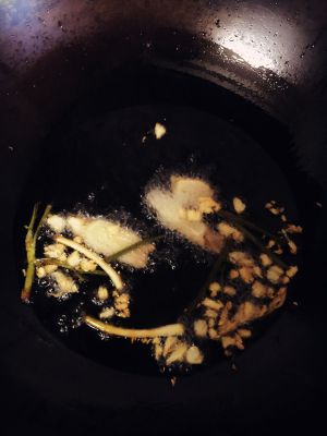 热锅下油,待油热入葱姜蒜爆至颜色焦黄捞出。下腌制好的鸡块。(忘记拍炸鸡块的图了-_-#)
