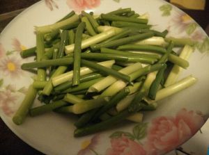 蒜薹洗好,用手掰断,不用菜单切会更好吃,入味些。