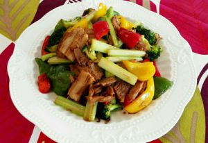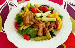 装盘放上辣椒点缀,一道美味又下饭的蒜苔回锅肉就完成了。