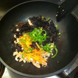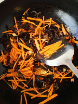 木耳丝,胡萝卜丝下锅翻炒