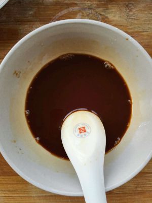 两勺酱油,一勺醋,一勺糖,一勺淀粉,加水调成汁备用