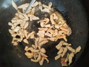 锅里放油,将肉丝炒变色,盛出备用。