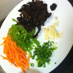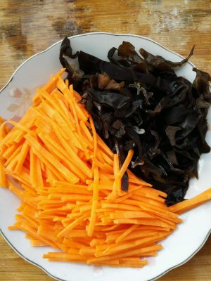 胡萝卜,木耳切丝备用