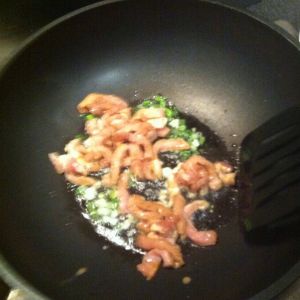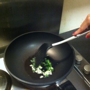 锅中下油,油热小葱蒜