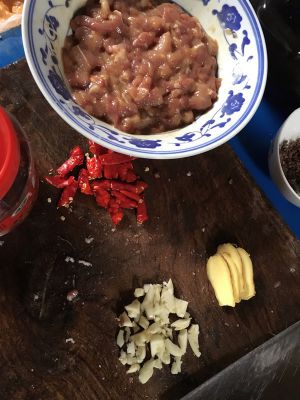准备好姜片,蒜末,辣椒干切段,豆瓣酱,花椒备用