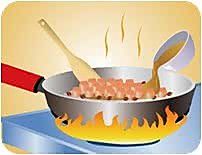 下入腌制好了的鸡丁,翻炒至食材8分熟。