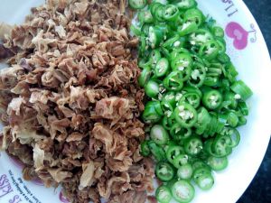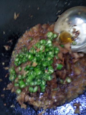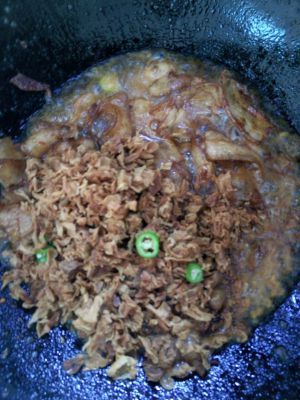 炒至肉出油,有些许焦黄后舀到盘子里待用