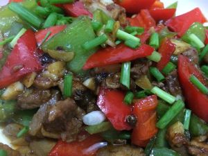 炒均匀后倒入蒜苗,炒到蒜苗熟了即可
