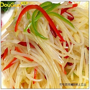 菜熟装盘、整形,一盘酸酸辣辣脆脆的土豆丝就可以上桌了