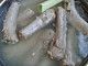 锅入加适量水、下入葱、姜段煮沸,倒入鸡脖去除血腥等杂质,捞出放到温水里洗净