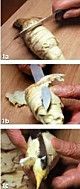 冬菇冲净, 放入碗内,加水浸过面,发至身软便挤菇汁回碗,去蒂,切细丝,约0.4厘米宽。菇汁留作别用。