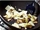 锅内下余油1汤匙,加入冬菇丝爆炒,依次下韭花、竹笋、红椒丝和肉丝同炒匀,下麻油包尾上碟。