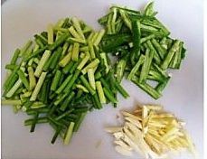 蒜苔辣椒切段,生姜蒜切丝。