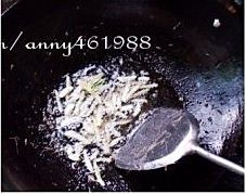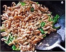 最后放入小河虾一起炒均匀放味精出锅。