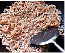 炒锅烧热放油放入小河虾炒干水汽铲出来备用。