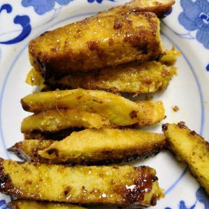 炸馒头条的油倒出一部分,锅内留一点点底油,小火,放入冰糖(冰糖依个人的口味,喜欢特别甜的就多放,我是一个小馒头放了一小把冰糖,大概10块左右)。冰糖小火熬化,成黄色即可,火候要看好,别熬过了,会苦。把炸好的馒头条倒锅里翻炒,均匀裹上糖即可