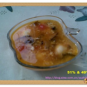将一个鸡蛋打散,在汤开的时候到入鸡蛋液用筷子快速的搅动,形成蛋花。