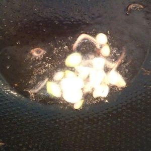 下入蒜片葱花煸炒香味