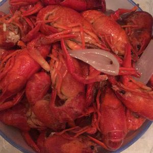 锅里适量油 烧至冒青烟 洋葱和小龙虾一起下锅炸3分钟