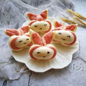 兔子放凉后,把少量巧克力装入裱花袋放热水中融化,裱花袋剪很小的口,画出兔子的表情。也可以用红豆做眼睛。